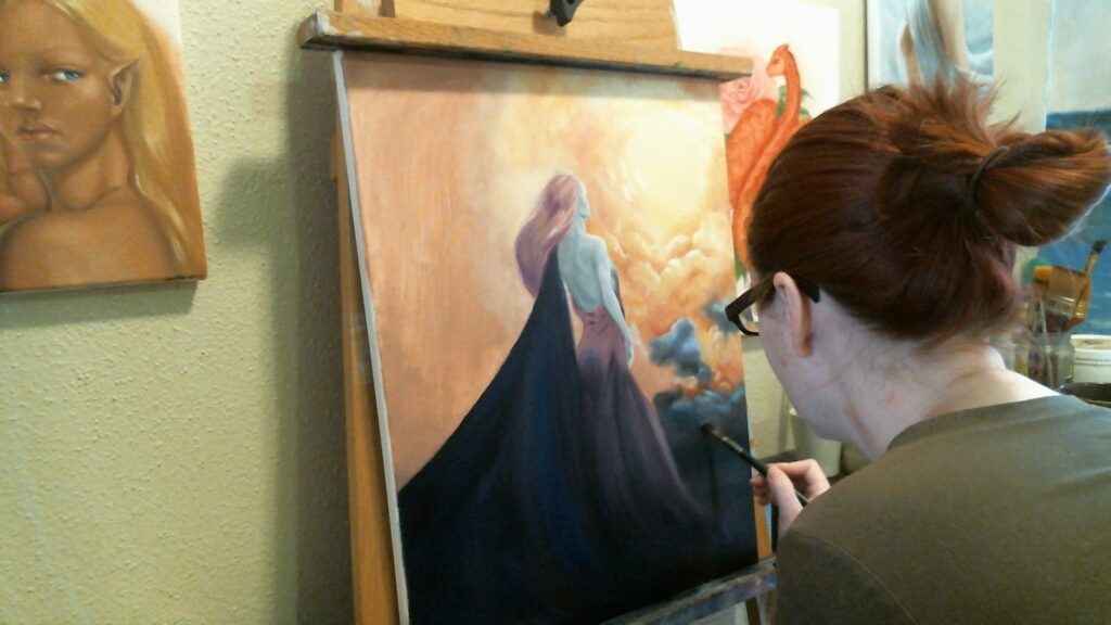 While my family didn’t really have the funds for me to pursue a more traditional learning path, I haven’t let that stop me from expanding my skills and knowledge. When I discovered oil paints as a medium over 10 years ago, and quickly fell in love, I set to work in devouring every bit of information I could about it. Each painting is a challenge and teaches me something new, as well as providing an outlet for my creative side that doesn’t get nurtured as much in a regular job.